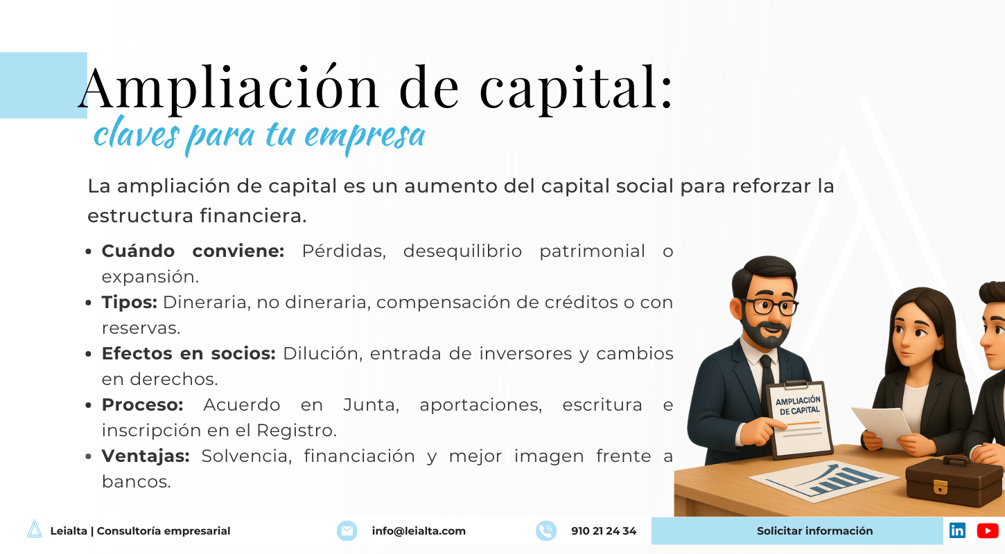 La ampliación de capital es una de las operaciones societarias más relevantes para reforzar la estructura financiera de una empresa, especialmente en pymes y empresas familiares.