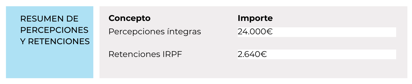 - Retenciones totales practicadas: 2.640 € (equivale a un 11%)
